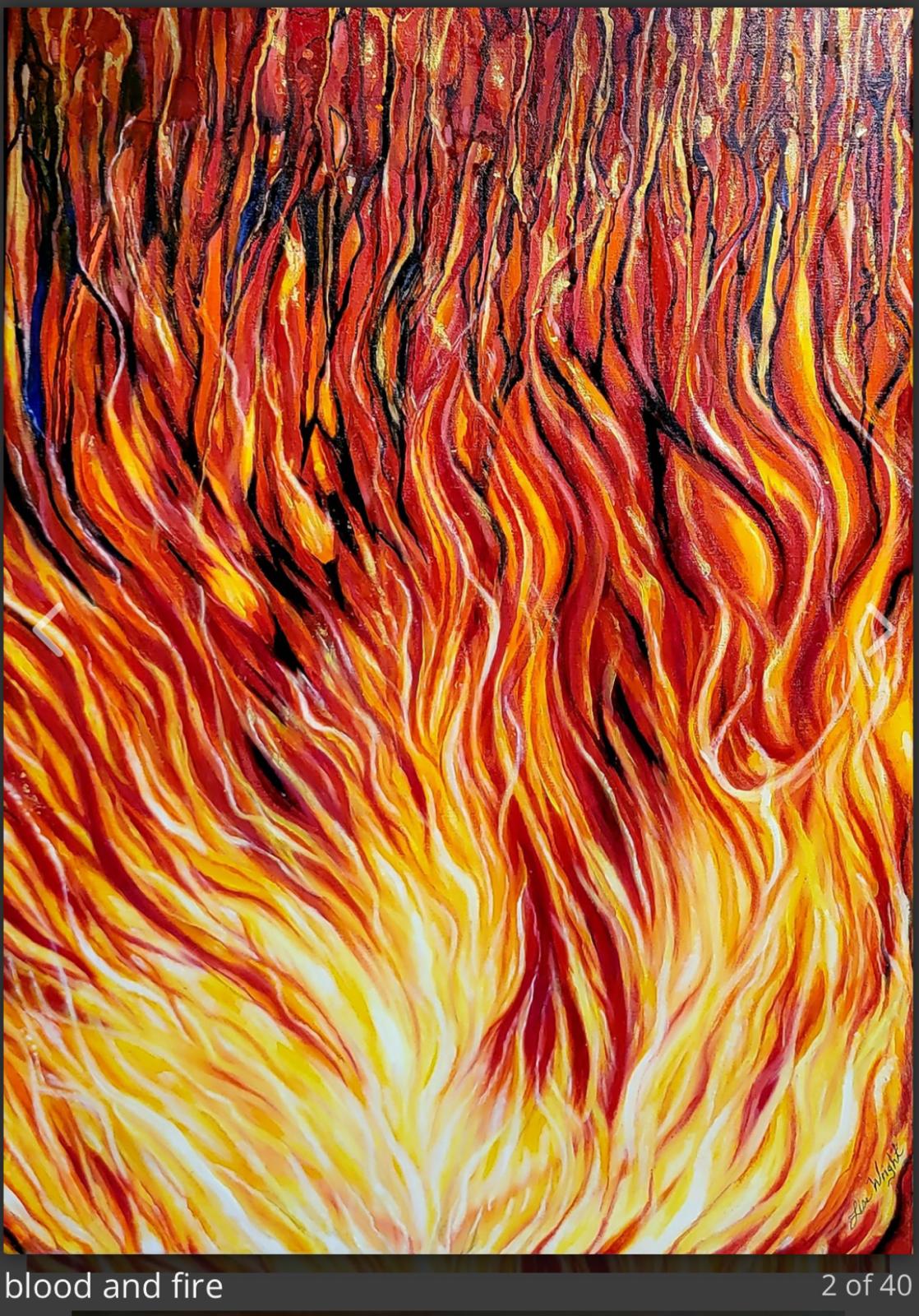 Painting by our mentor Lisa Wright. “Blood and Fire” ‘I will baptize you with water but He who comes after me will baptize you with the Holy Spi...